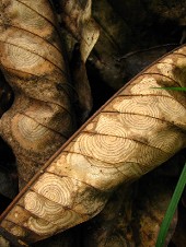 そこらじゅうに落ちている枯れた木の葉に、木の年輪みたいな模様が