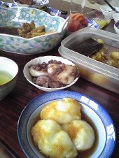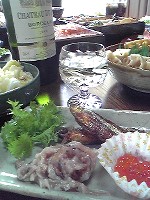 母のお料理を食べ、飲み、