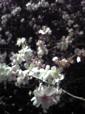 境内の、満開のなんじゃもんじゃの木の下で、