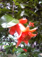 境内のツヤツヤなざくろの花。